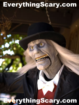 A growling, angry old dead man greets Trick or Treaters on Halloween